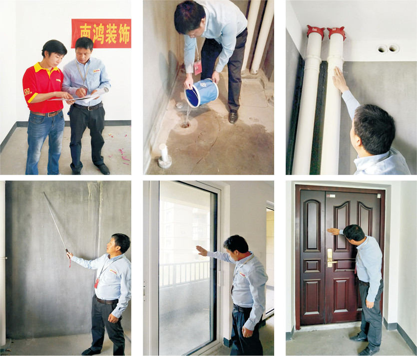 開工時客戶、項目經理、設計師、工程監理現場圖紙交接,檢查下水是否通暢,墻體、地面是否空鼓,下水管接口處是否滲漏,外墻是否滲水,進戶門、窗戶玻璃是否劃傷或破損,地面有無貫穿性裂縫和起砂,衛生間、陽臺頂面是否有滲漏及樓層凈高是否誤差大。